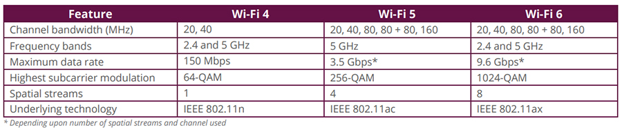 从调制上看WiFi 5是256-QAM,WiFi-6是1024-QAM,前者的数据流最大支持4个,后者则最大支持8个,因此WiFi 5的理论吞吐量可以做到3.5Gbps,而WiFi 6则可以做到惊人的9.6Gbps。WiFi6的带宽比WiFi5大了数倍。